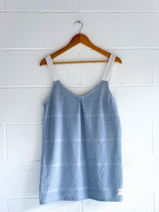 • dusty upcycled blue vest byron bay