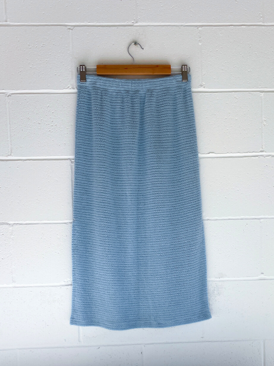 • dusty upcycled blue midi skirt byron bay