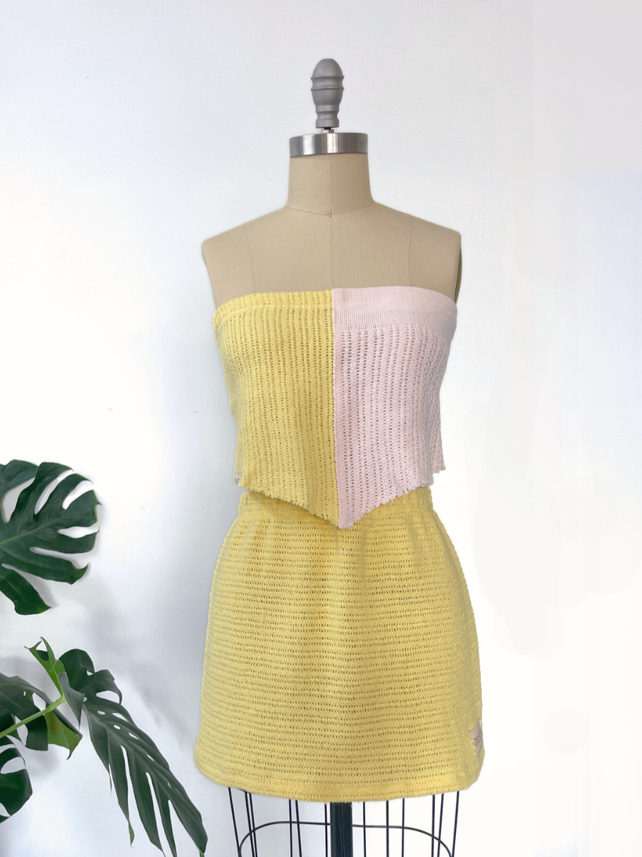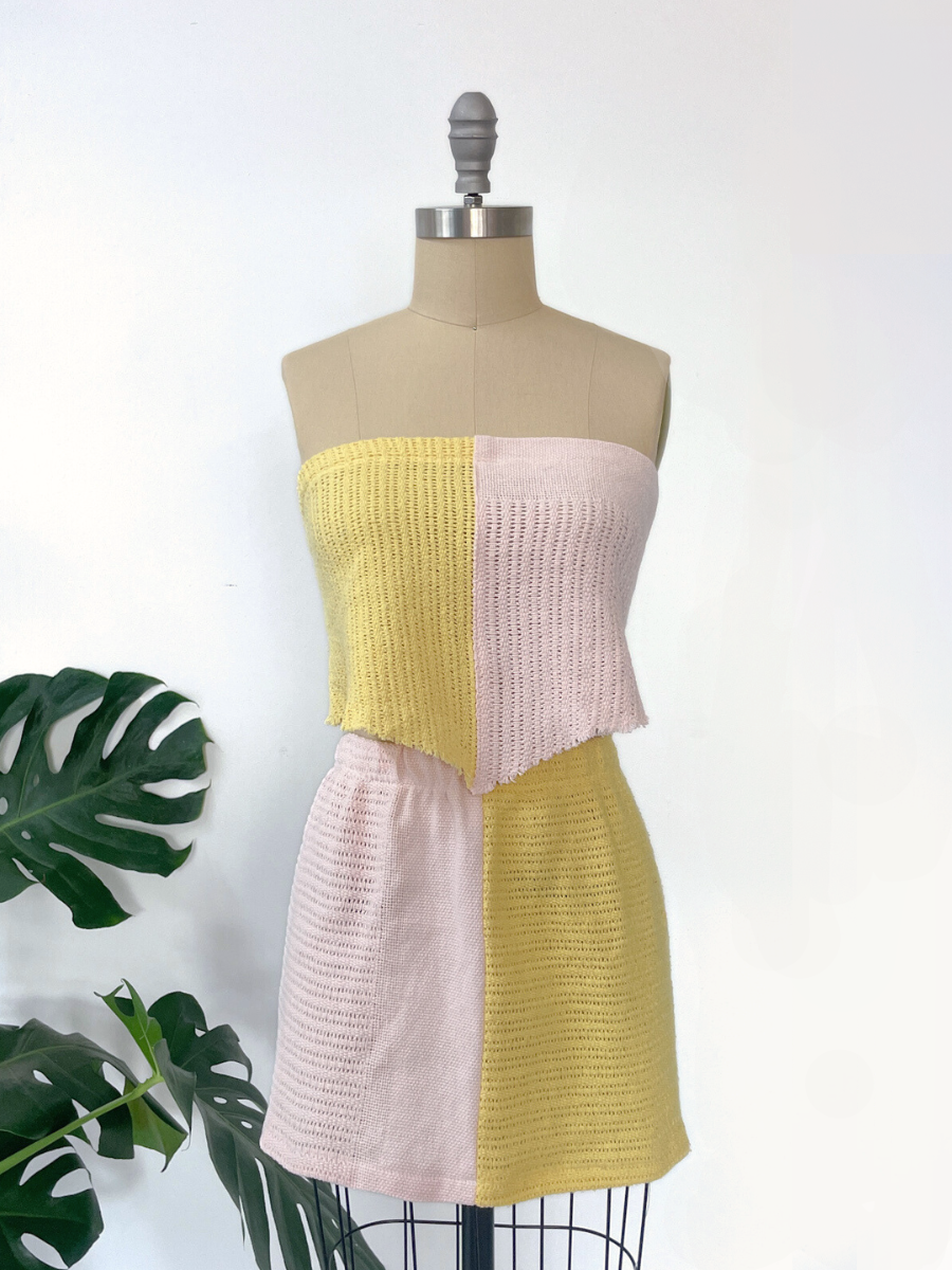 Our Summer Set pairs our Caba Mini Skirt with the Shelly Scarf Top ~ crafted from the very same slices of blanket for a perfectly coordinated, one-off fit
